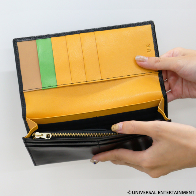 シンプルなブラックの外観とは裏腹に、内装は金運をあげてくれそうな鮮やかなイエローをチョイス。差し色にグリーンを配置しました。