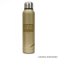 シャンパンゴールドのステンレスボトルにゼウスの顔とGOD図柄が大きく入ったパンチのあるデザイン!