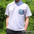 胸ポケットにはおなじみの金魚&青海波(せいがいは)をあしらった、とっても涼しげな1枚です。
