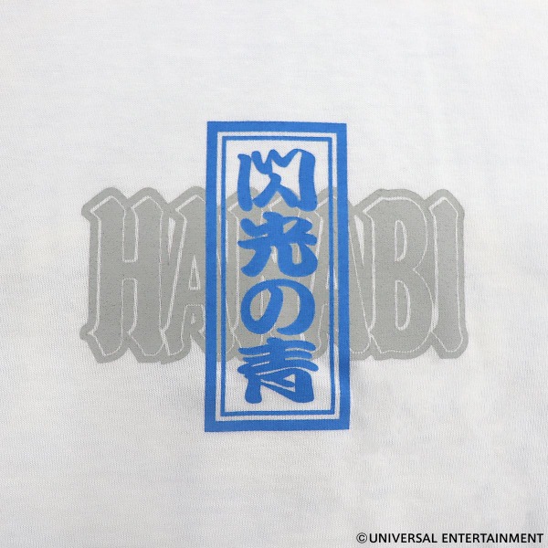 フロントには「閃光の青」の文字にHANABIロゴを重ね、バックは青ドンちゃんの顔が大きく印刷されたインパクトあるデザインとなっています。